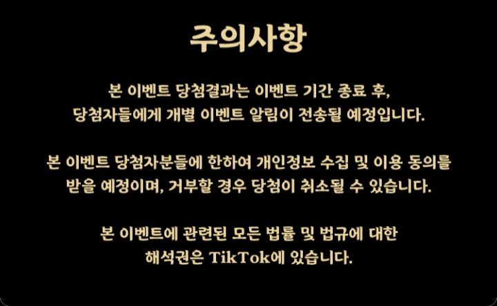이벤트 당첨이 되면 개별 이벤트 알림이 전송된다고 합니다. 개인정보 수집 동의는 이후 받는다고 하네요~