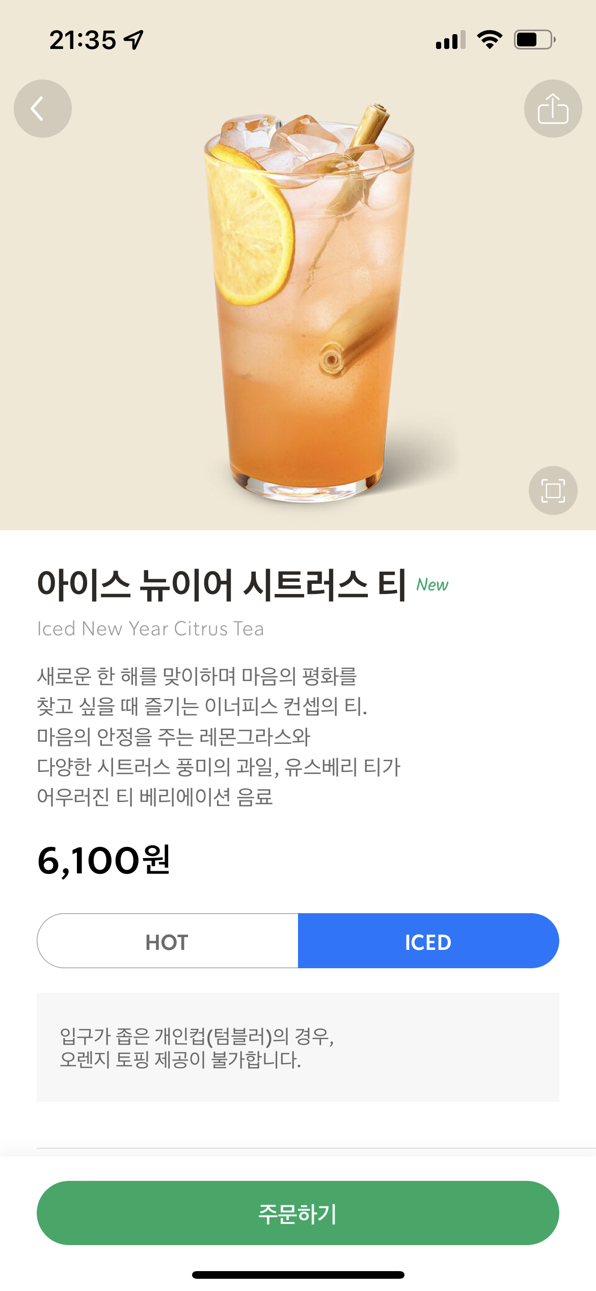 시트러스를 좋아해서 주문한 스타벅스 뉴이어 시트러스 티