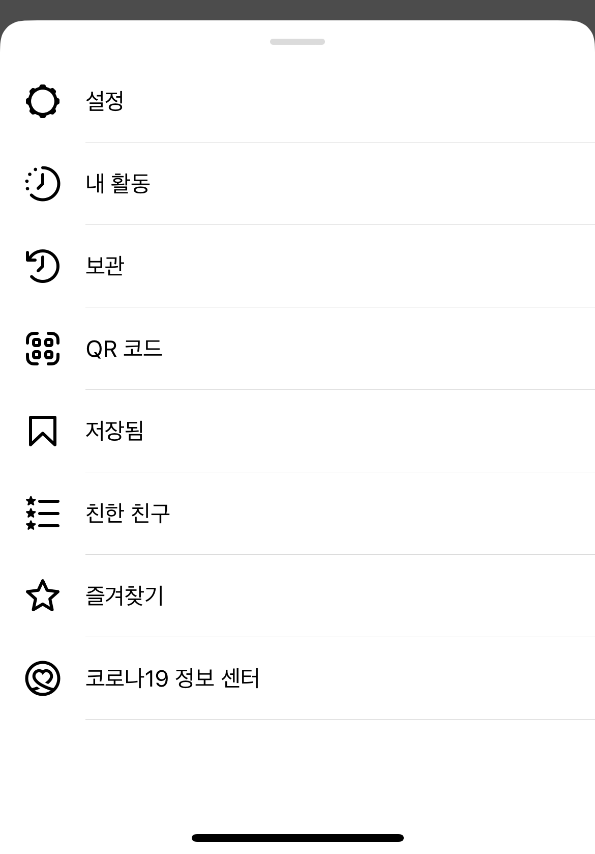먼저 인스타그램 설정창으로 들어가줍니다. 내 피드가 보이는 화면에서 우측상단 三 버튼을 누르면 설정창이 뜨는에됴 설정으로 들어가 주시면 됩니다.