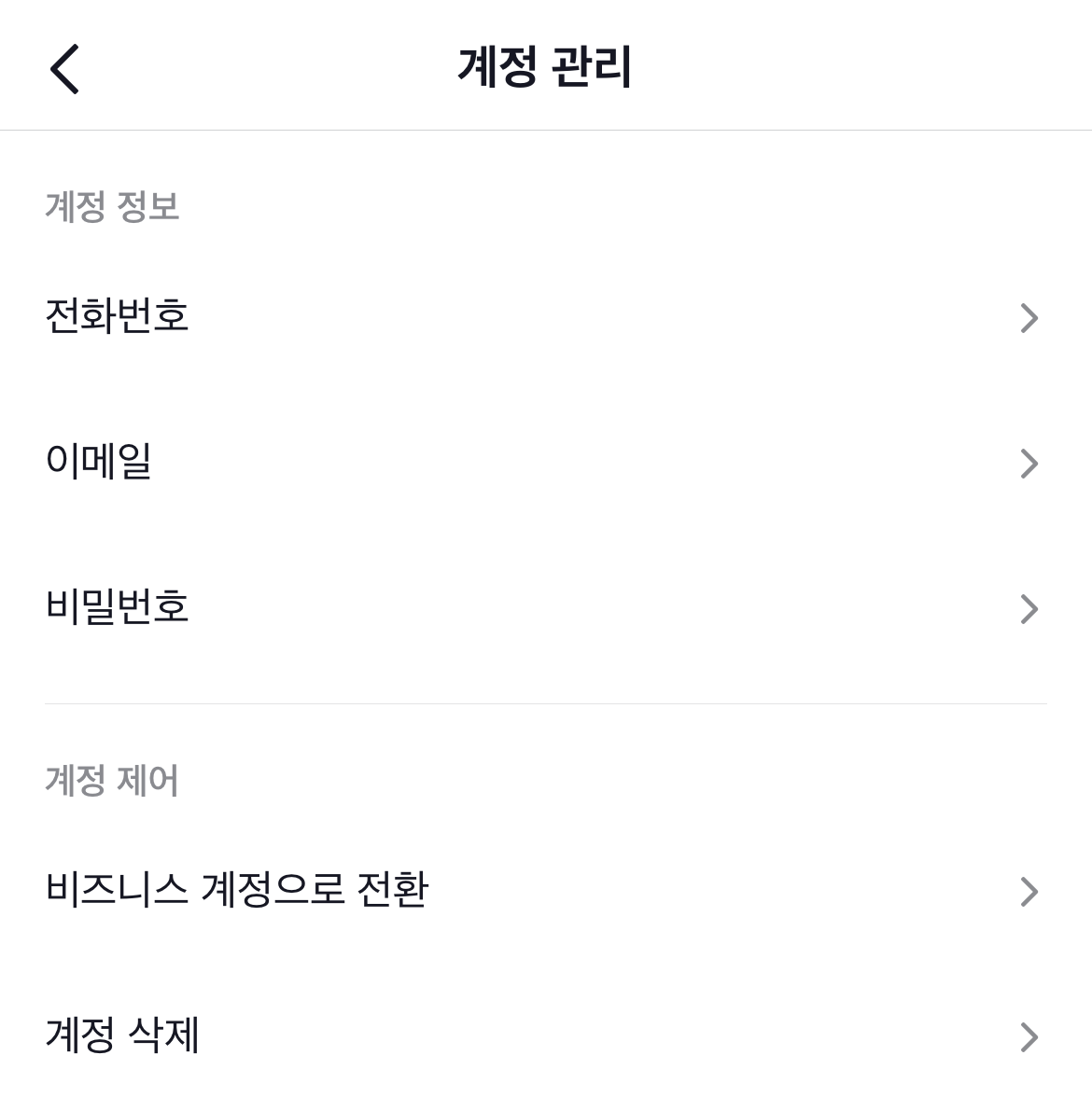 계정관리를 클릭하면 틱톡 계정 삭제 창이 뜹니다.