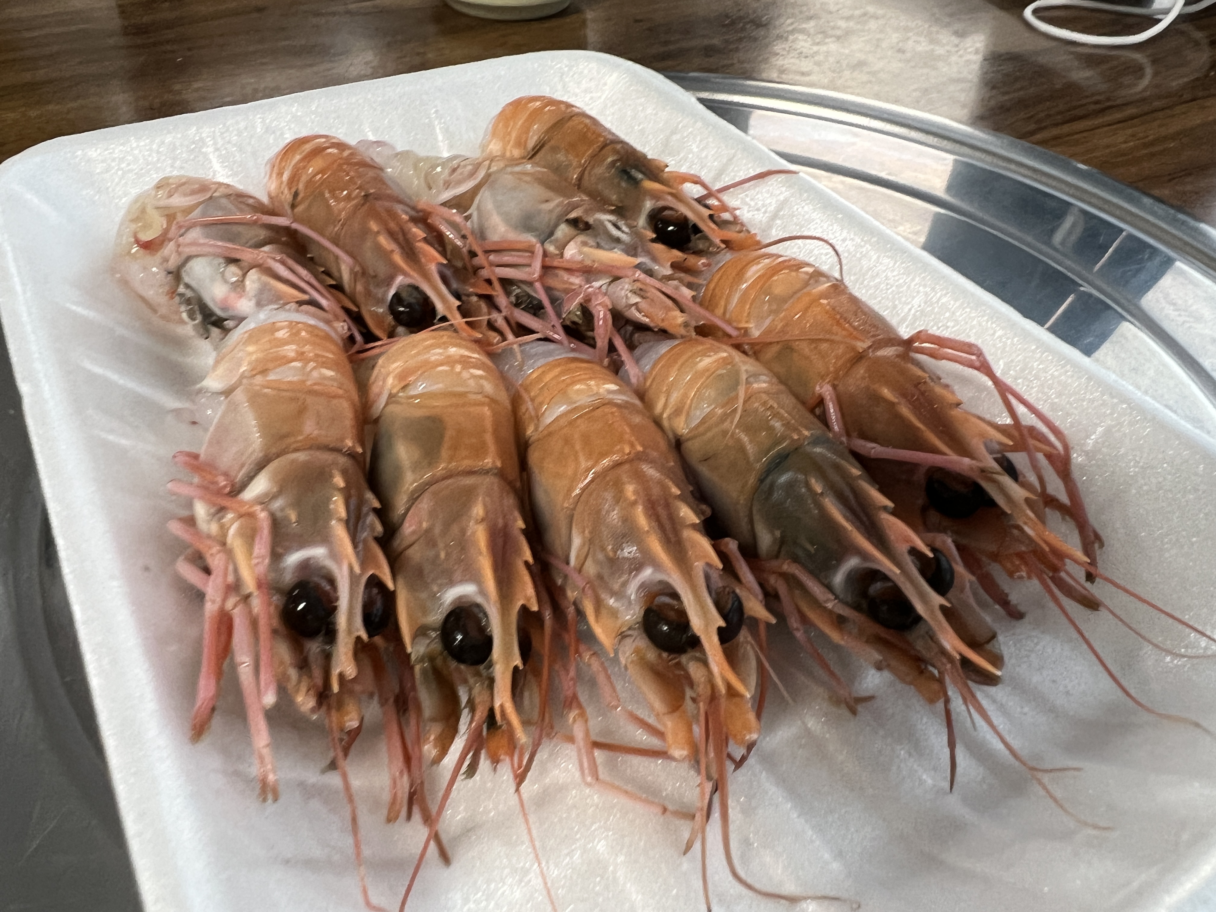 딱새우 머리부분을 잡고 입으로 뽑아서 먹으면 새우 뇌가 보이는데 파란색이라서 조금 속이 좋아지지 않았어요