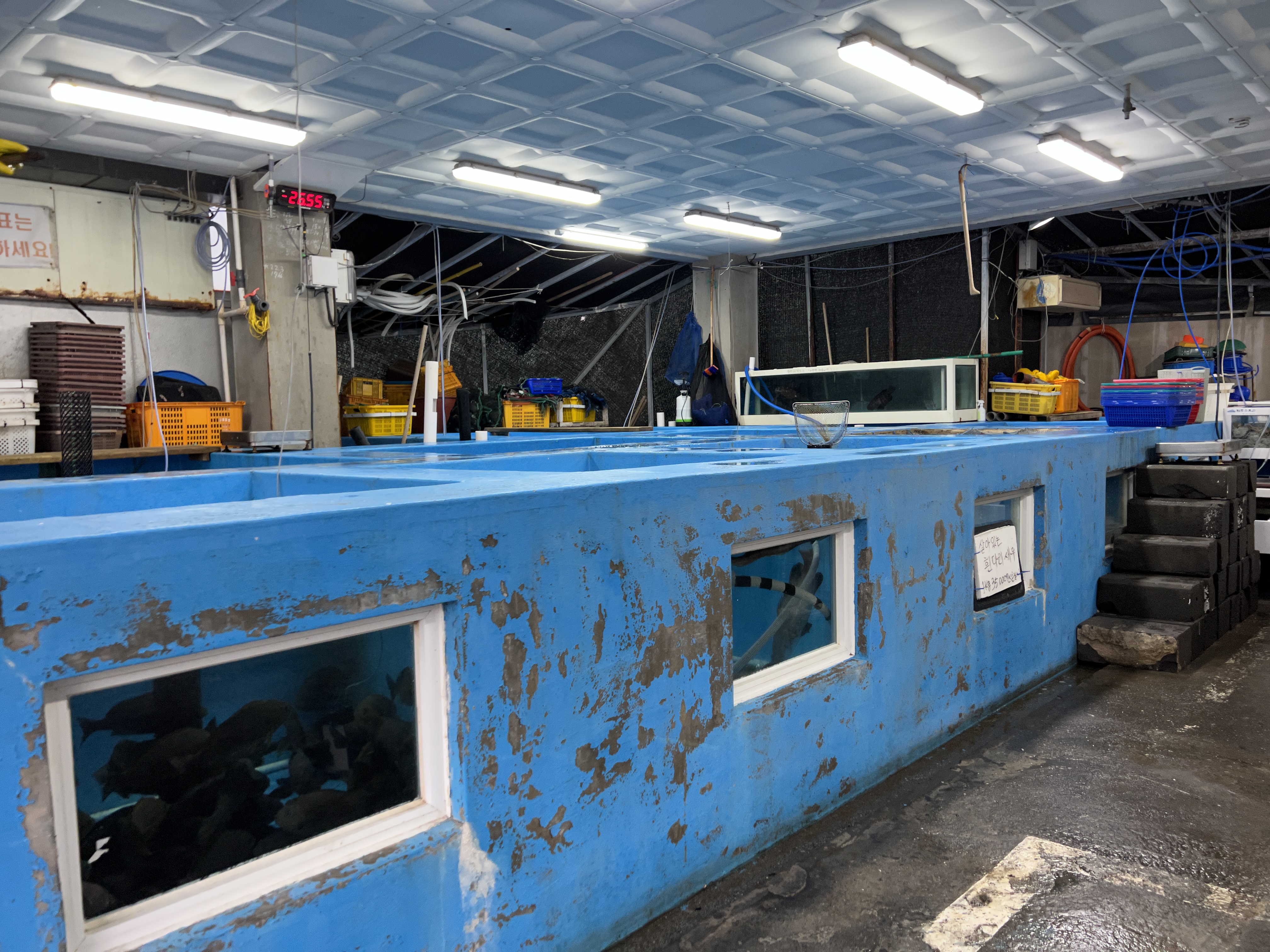 1층은 회를 구매하는 곳, 포장 대기를 하는 곳이고 2층에서는 1층에서 구매한 회를 올려서 먹는 곳이었습니다. 상차림비만 추가로 내면 편하게 앉아서 먹을 수 있습니다.