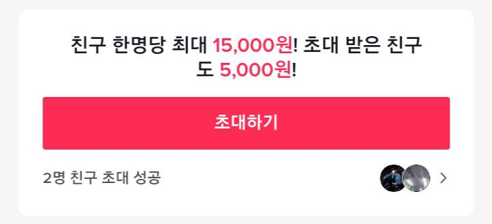 친구 초대하면 기존에 3,000원 들어왔던게, 5,,000원 들어오는 걸 보면 틱톡을 시작하려고 하는 사람들도 틱톡 가입하면서 5,000원 받고 시작하는게 이득이겠죠?