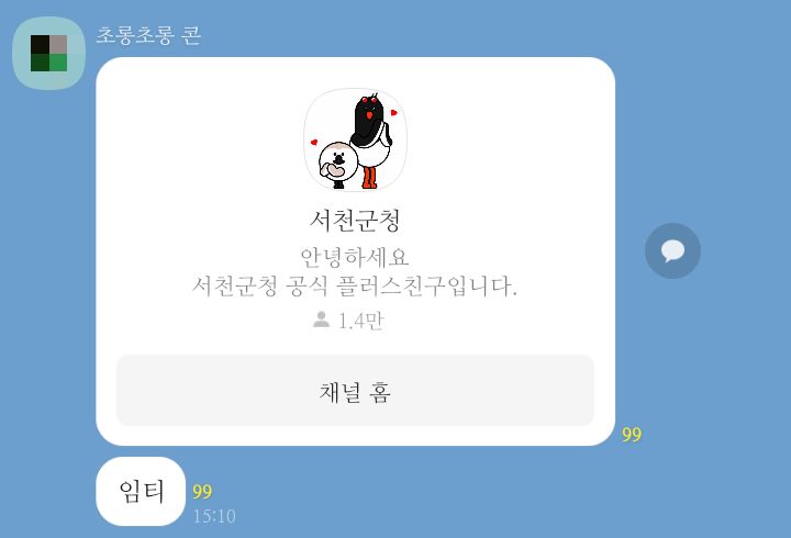 서천군청 페이지를 추가하면 바로 이모티콘이 들어옵니다.