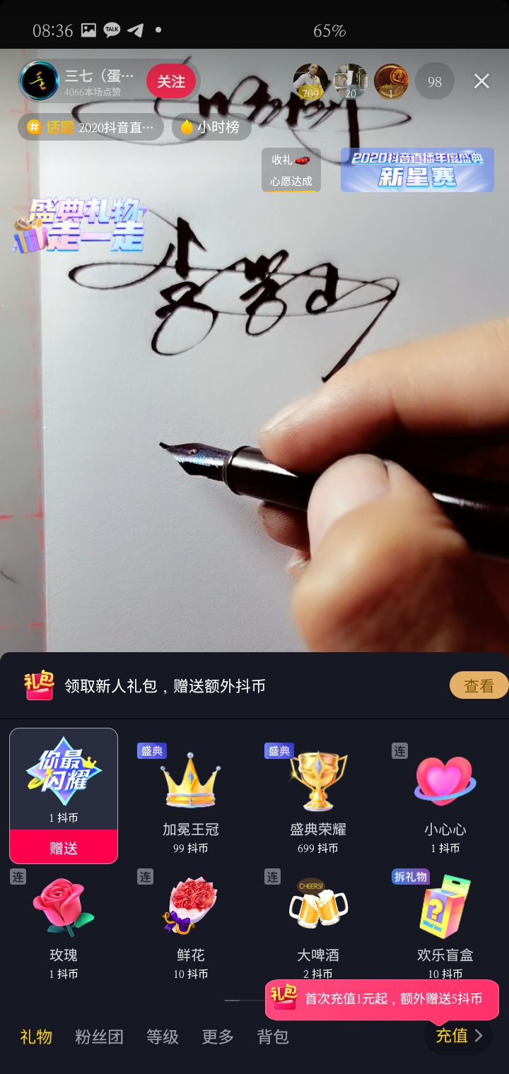 중국틱톡도우인에서는 이렇게 라이브도 활성화되어있어요. 우측하단의 하트나 선물을 누르게 되면 선물이 뜨고 이게 현금, 별풍선처럼 전달되는 구조인 것 같았어요. 누구나 라이브를 할 수 있는 것이 아니라 인증을 받은 사람만 할 수 있었어요. 중국의 최신 유행이 빨리빨리 보여서 한국에서 틱톡을 시작해보려는 분들도 중국 틱톡 참고하면 좋을 것 같아요~