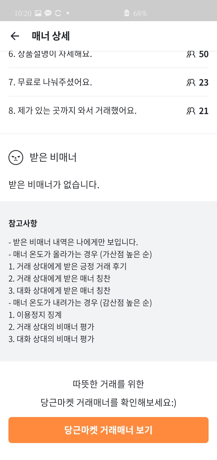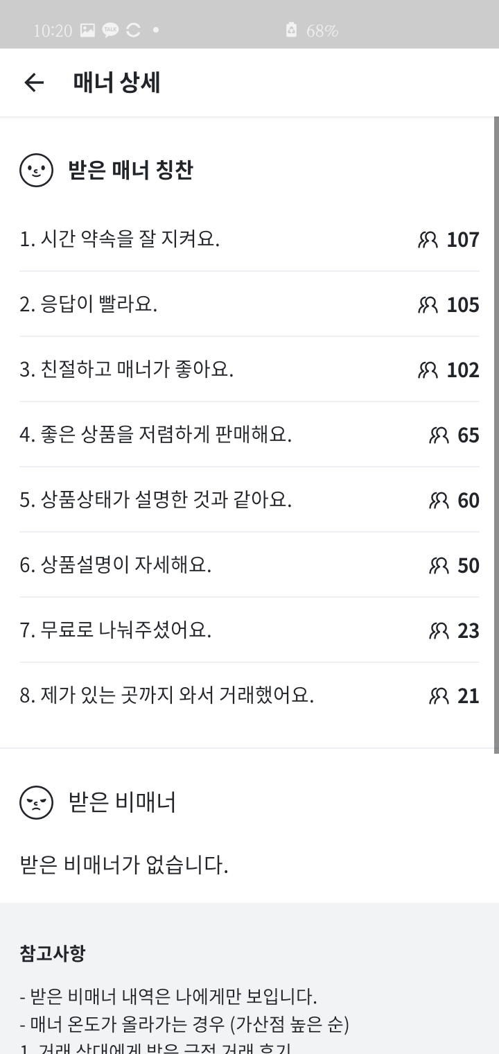 많이 구매하는 만큼 매너 칭찬들이 쌓일 것이고 그게 바로 온도랑 직결된다고 생각이 됩니다.