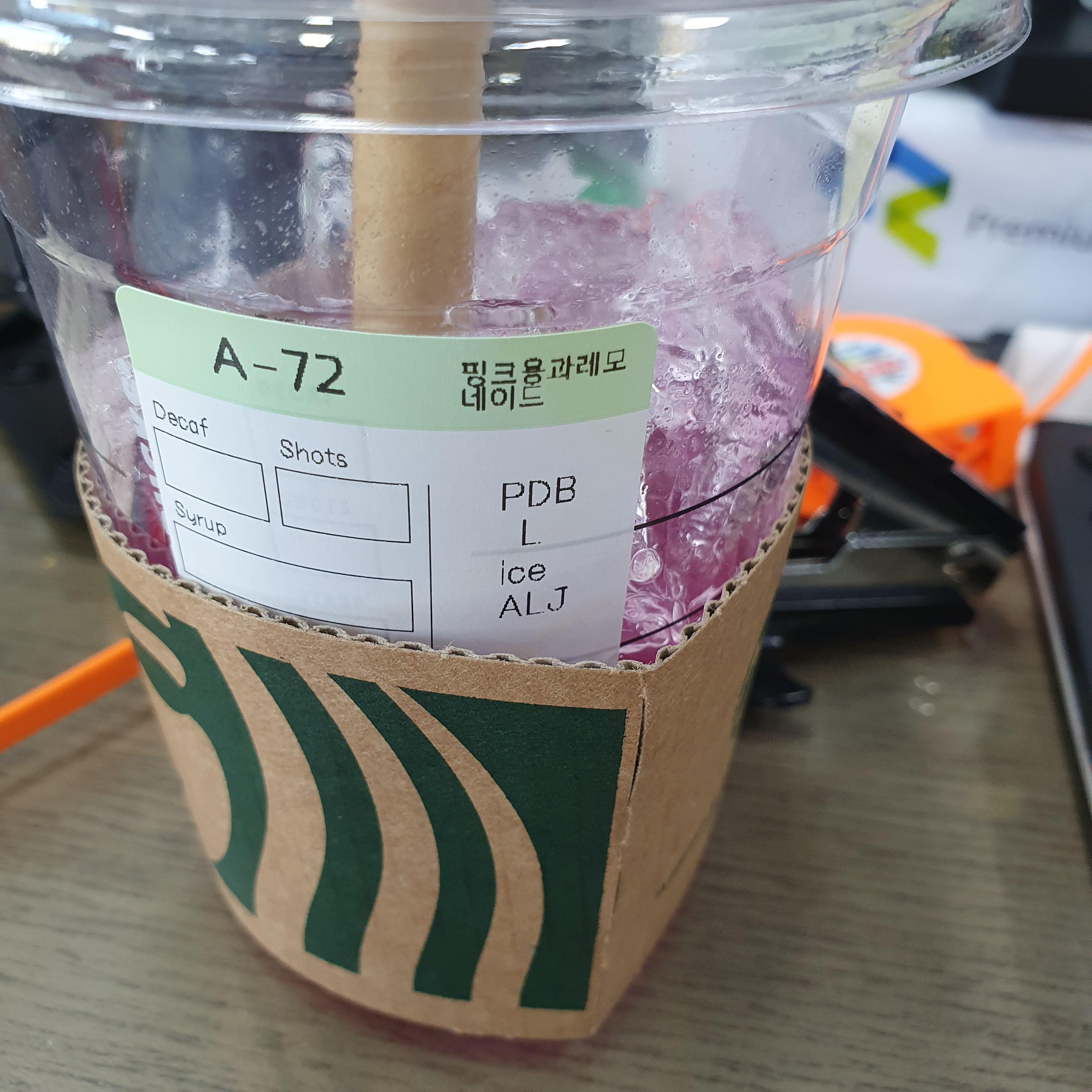 스타벅스 핑크용과레모네이드는 따로 커스텀을할 필요가 없습니다.