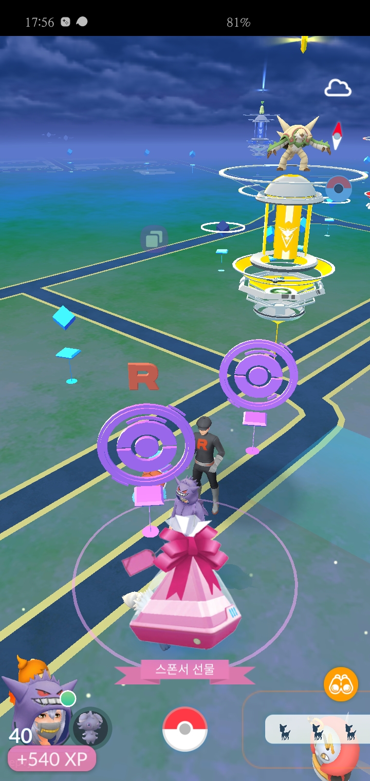게임을 몇년동안 하다가 이번에 처음 스폰서 선물이라는 것을 발견했어요. 스폰서 포켓스탑도 아니고, 그냥 일반 조각상 스탑이었는데 스탑을 클릭하니 스폰서 선물 이라고 떠서 바로 캡쳐를 눌렸습니다.