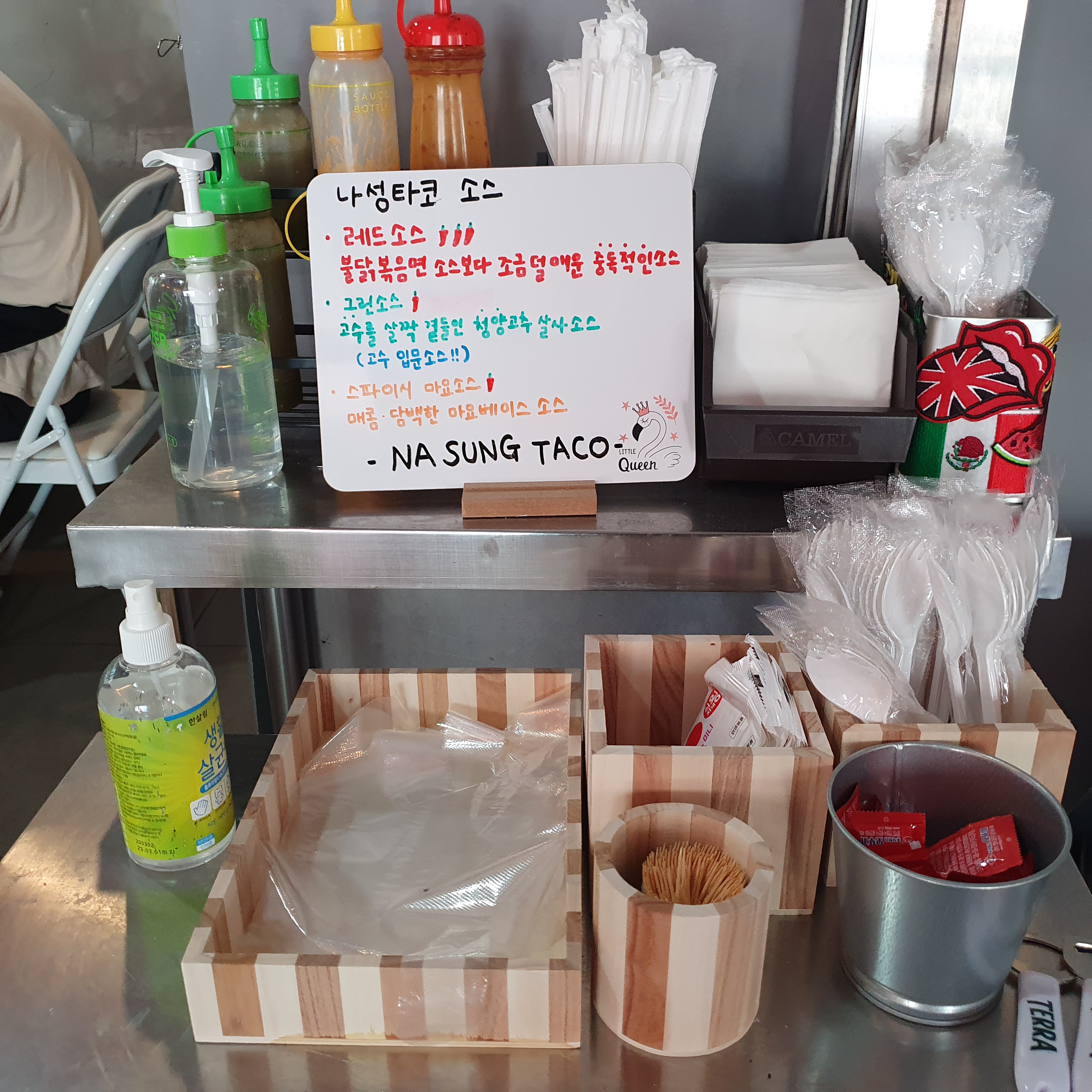 나성타코에서는 음식만 나와줄 뿐 내 테이블 위에 올라오는 것들은 다 개인이 준비해야합니다.
